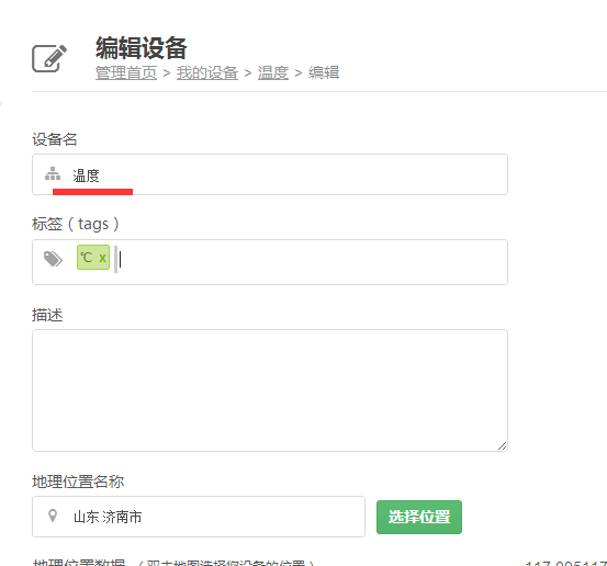 3:添加設(shè)備名為溫度。可以自定義名字。