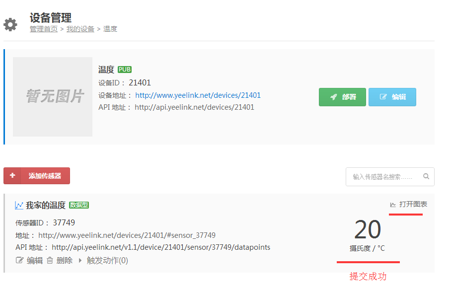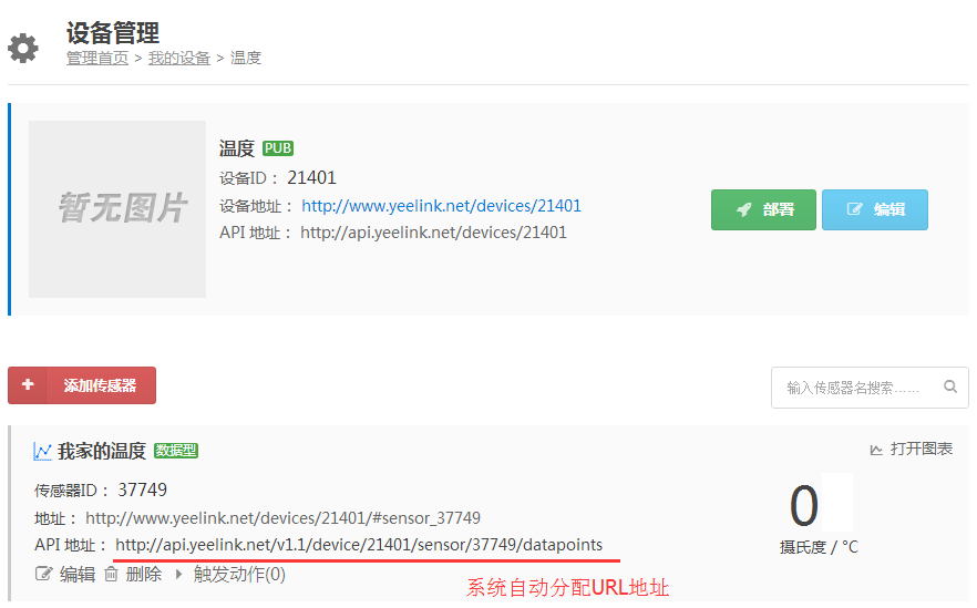 5:記住傳感器的API地址,此API地址用戶WiFi模塊通信的鏈接URL。