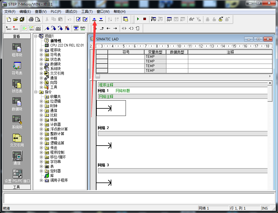 8:新建一個程序,寫入程序,例子是一個:輸入控制輸出的一個程序。