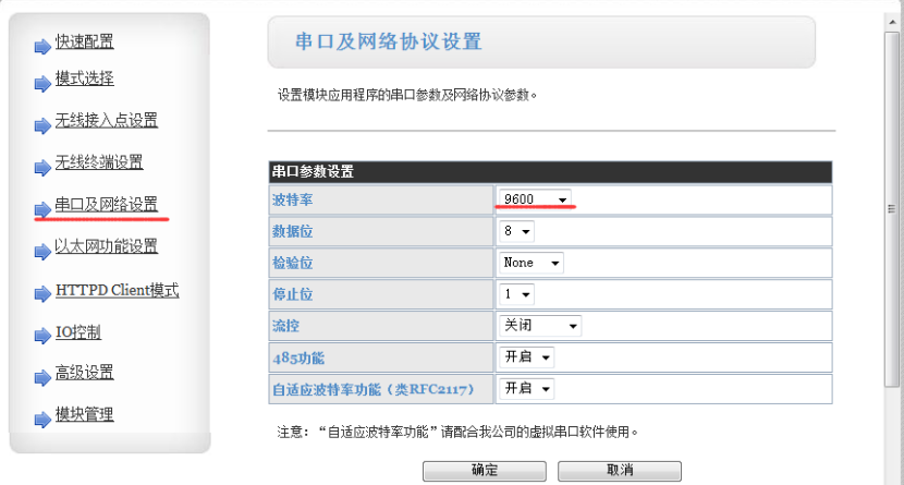 g)讀卡器波特率為9600,所以需要將604模塊波特率修改為和讀卡器匹配。連接上模塊的無線信號后,打開瀏覽器輸入10.10.100.254,賬戶密碼為admin,進入到模塊內置網頁后,在串口及網絡設置里將模塊波特率修改為9600,參數設置完畢后點確定并重啟模塊。電腦重新連接到模塊信號。
