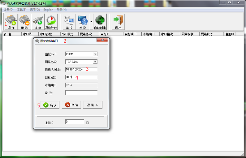 h)打開虛擬串口軟件,創建COM口,按照圖片中參數設置。