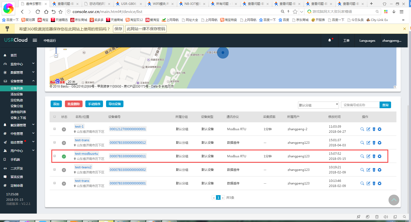客戶實際應用:modbus rtu設備---410s--路由器--透傳云(組態顯示)