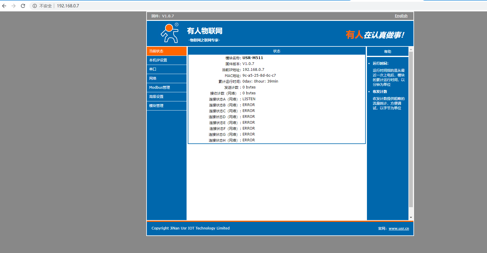 3. 瀏覽器輸入IP:192.168.0.7進入M511的內置網頁,用戶名密碼默認為admin
