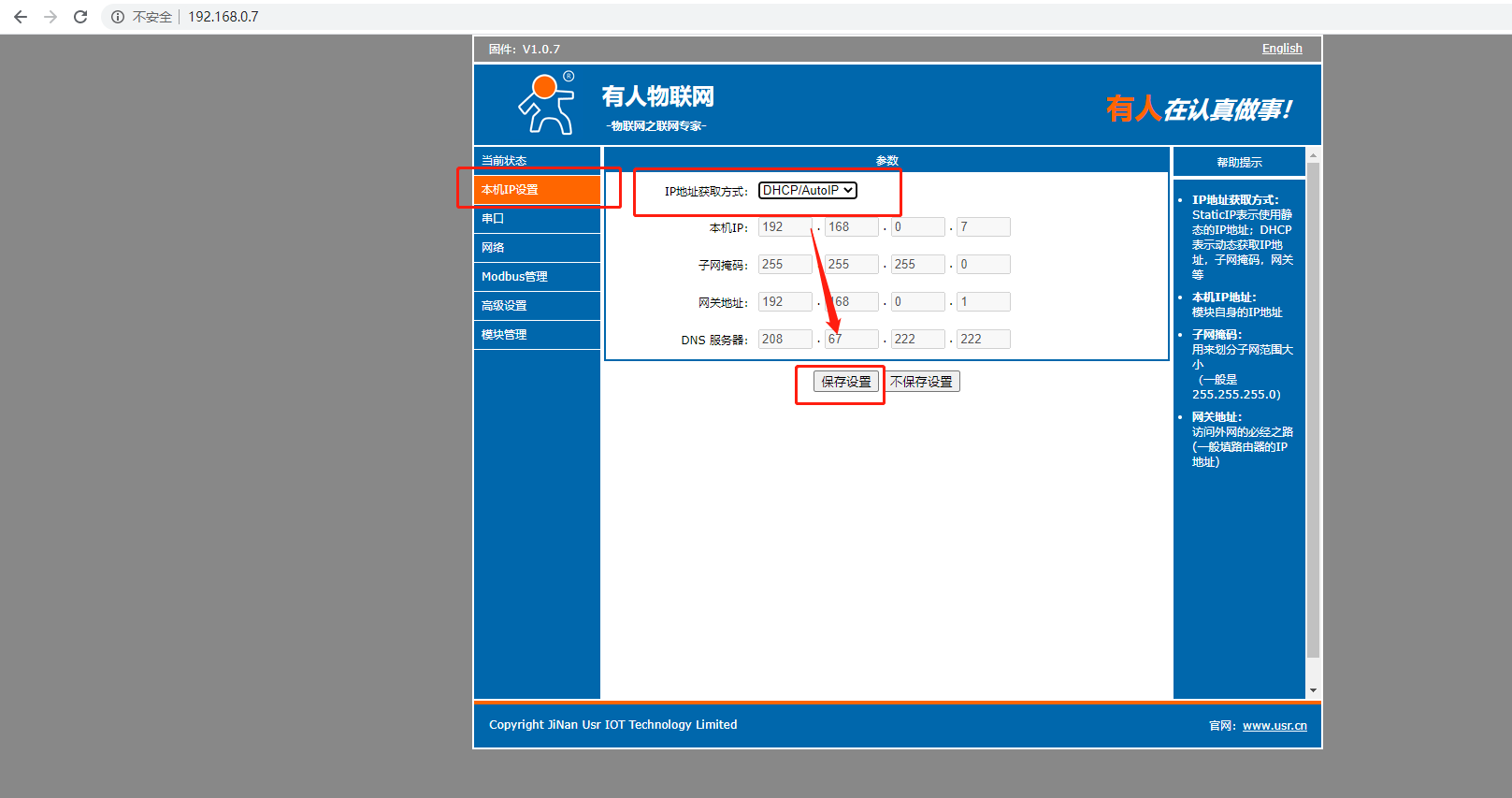 6. 完成重啟后,此時的M511使用的是路由器分配的IP,這時將電腦連接M511的網線連接同一路由器,使電腦與M511都使用路由器分配的IP,且都存在于同一網段。可以從路由器中獲取M511當前IP,通過此IP進入內置網頁,或者通過設置軟件搜索當前M511IP。通過新IP進入內置網頁。