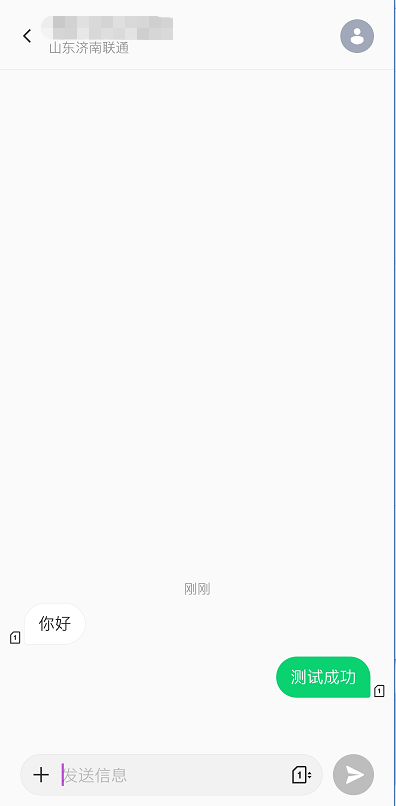 發送數據“你好”,我們可以看到目標手機號接收到了該數據