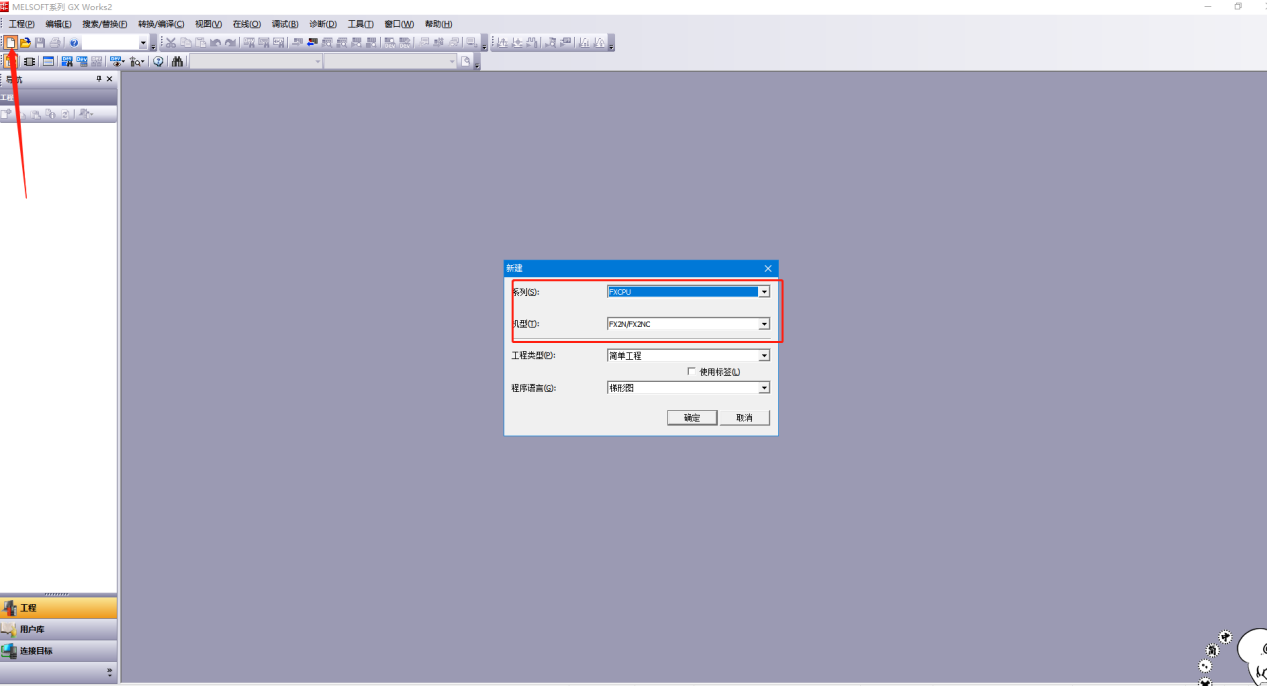 7.打開三菱的上位機軟件,點擊新建,選擇PLC的型號