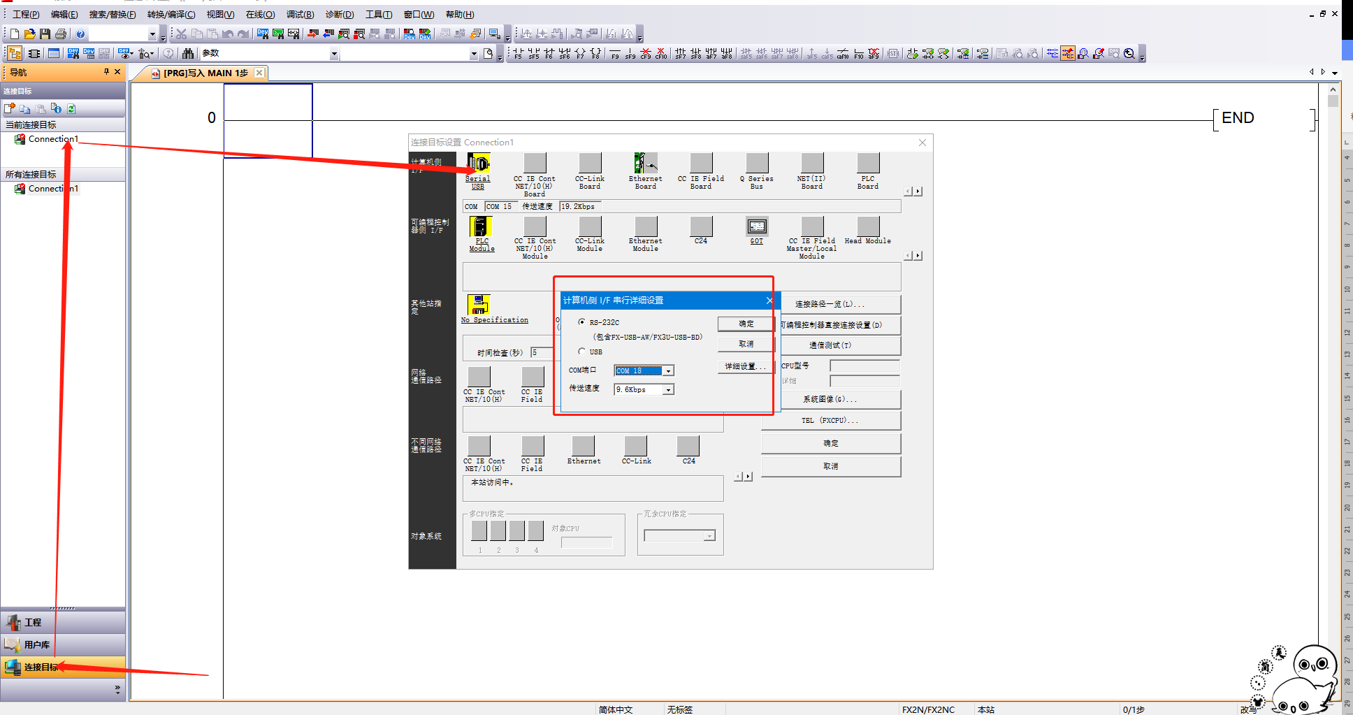 8.點擊連接目標,選擇生成的虛擬串口,波特率為PLC的波特率