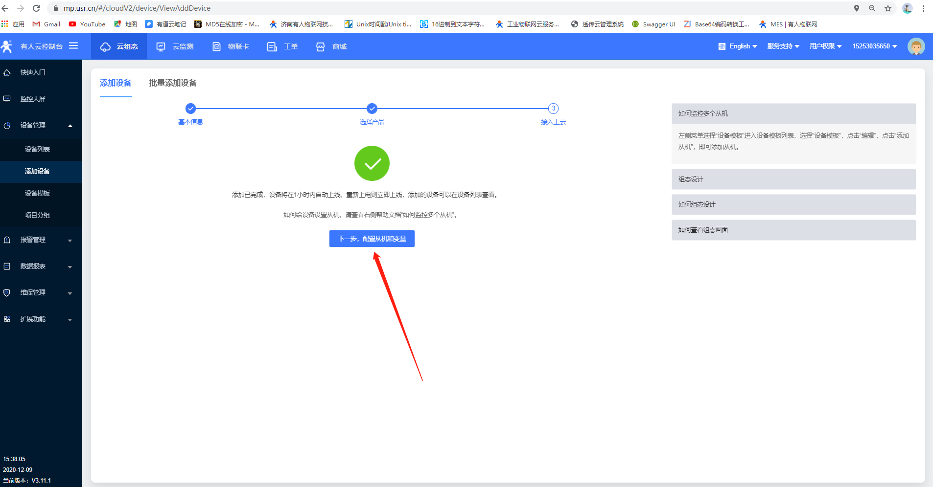 1.登錄有人云賬號和密碼,點擊添加設備,輸入PLCNET510的SN和MAC,點擊下一步