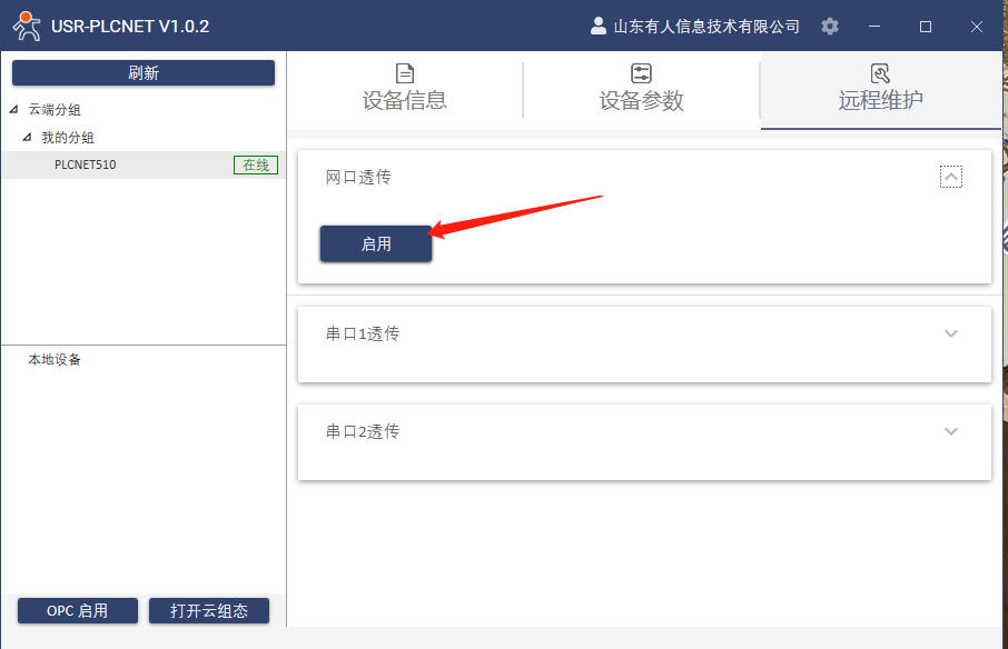 8.點擊遠程維護,啟用網口透傳