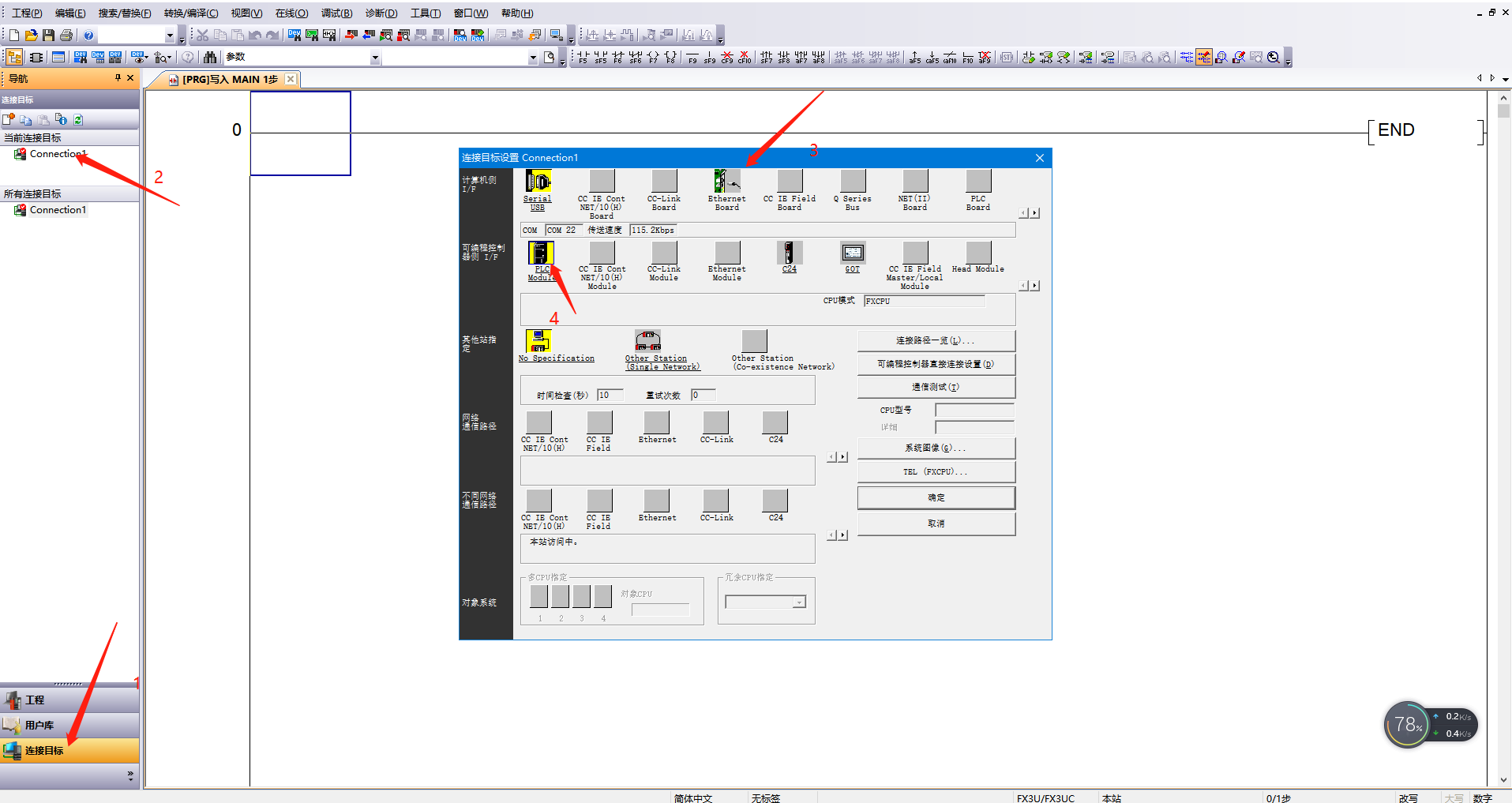 10.打開三菱上位機軟件,新建工程,選擇對應PLC型號