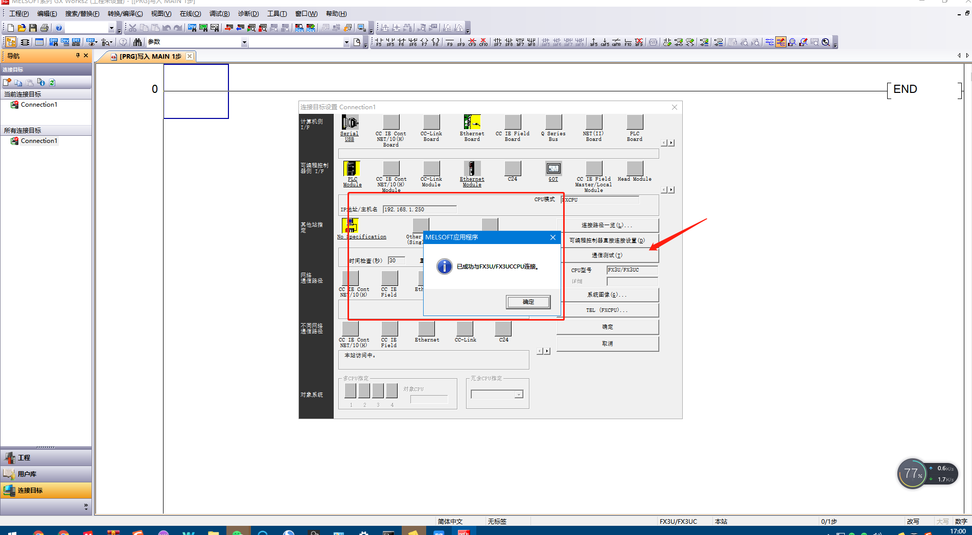 13.點擊通信測試,和PLC建立連接