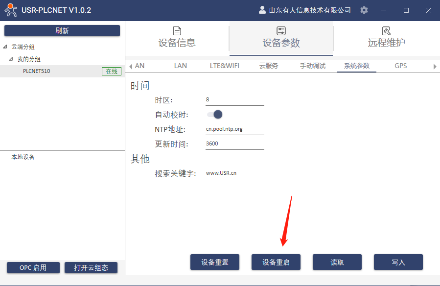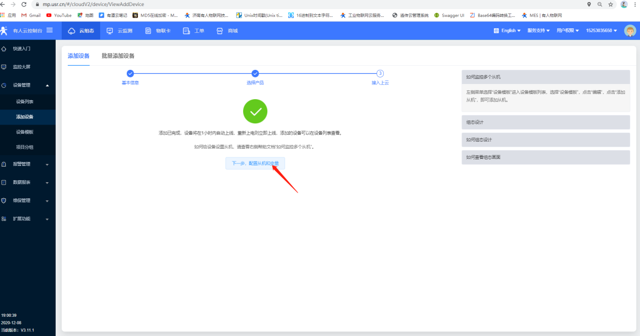 1.登錄有人云賬號和密碼,點擊添加設備,輸入PLCNET510的SN和MAC,點擊下一步