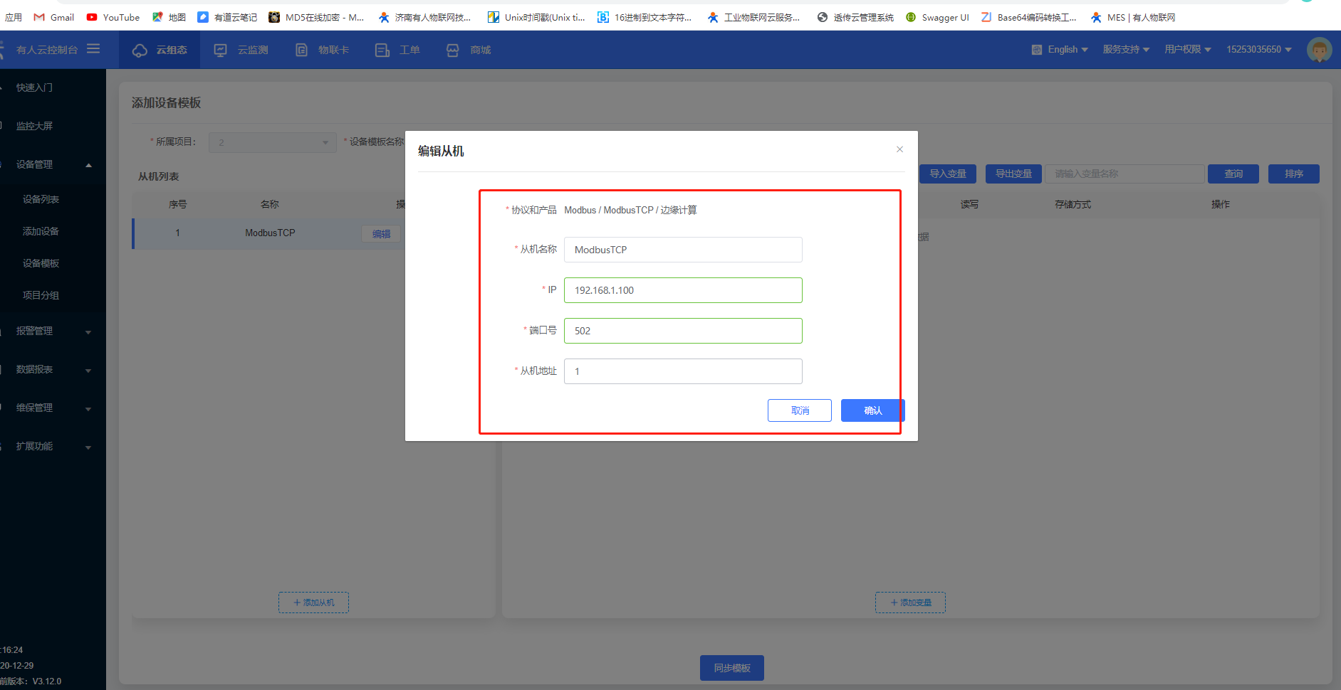 5.填寫PLC的IP、端口和從機地址