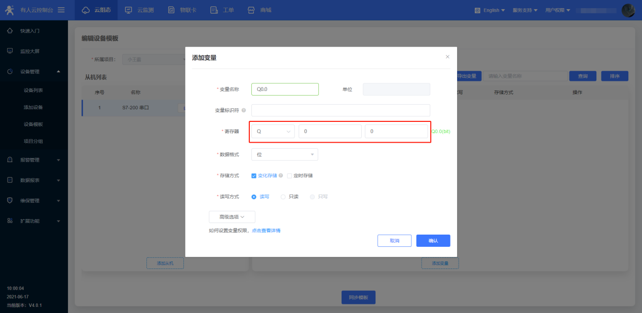l 添加從機(jī)和變量(請注意串口序號的對應(yīng),從機(jī)地址是PLC內(nèi)部屬性,S7200默認(rèn)2)