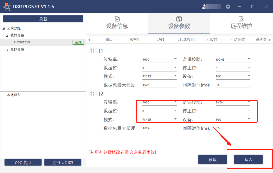 l 設(shè)置串口參數(shù):485模式-9600bps-EVEN-8-1(S7200默認(rèn)參數(shù))