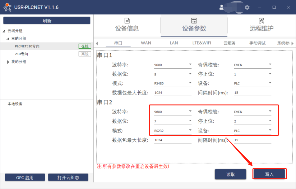? 重啟完成后,打開串口2透傳,生成虛擬串口(可在設備管理器查看)
