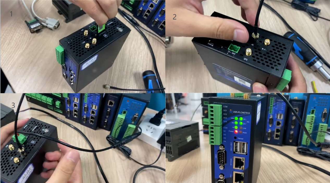 ? PLCNET510插入SIM卡、連接天線,設備上電——駐網成功(2/3G信號燈和信號強度燈常亮,work燈閃爍)