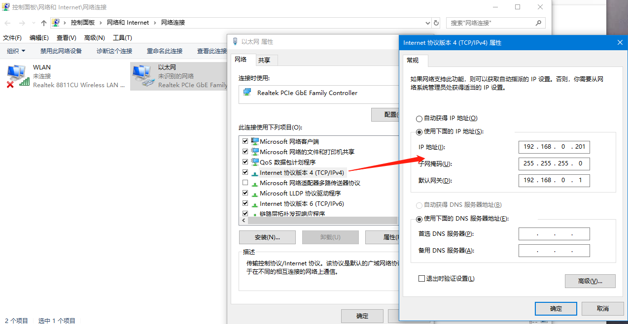 3、將電腦IP設置為與設備同網段的IP:192.168.0.201。