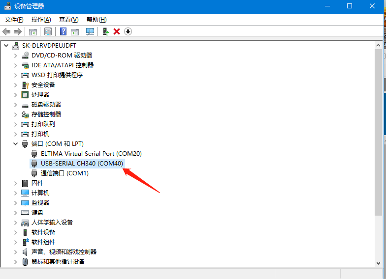 10、在電腦設備管理器處確認串口轉USB插在電腦上識別到的COM口為:COM40。