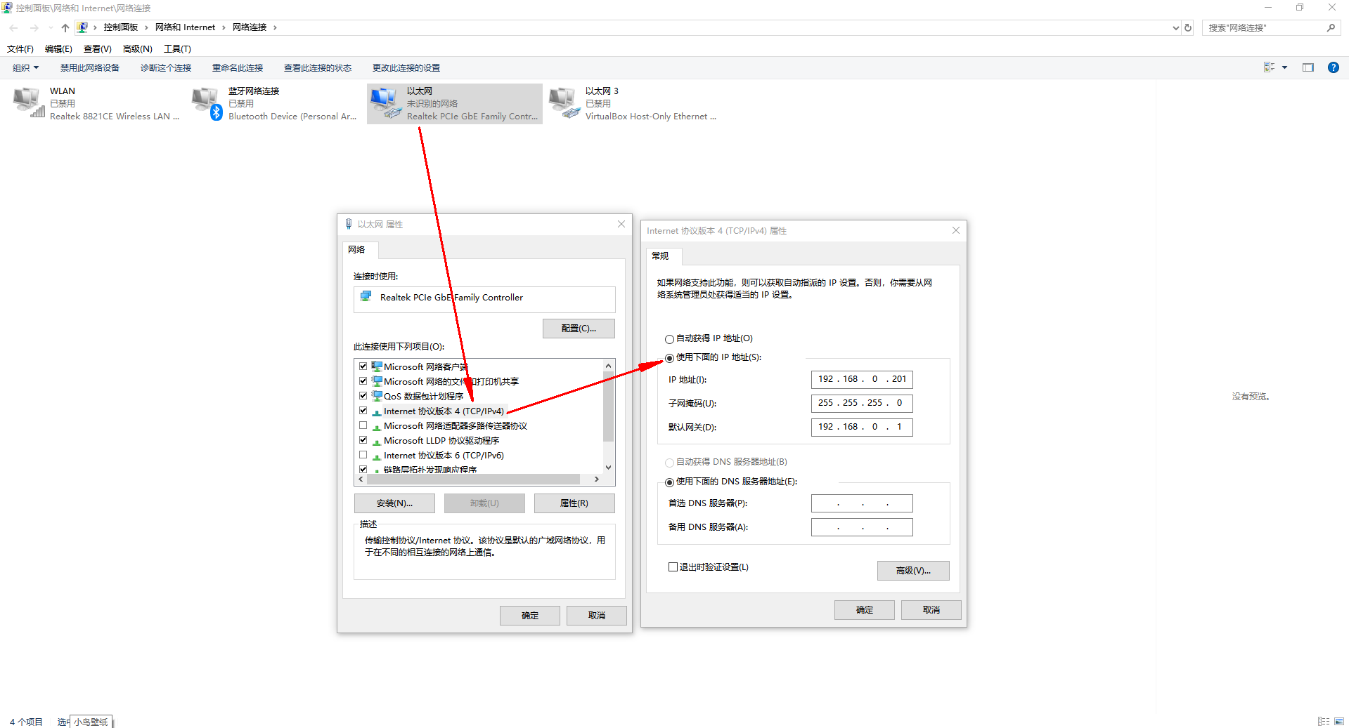1)電腦本地連接,IP設置和N510 IP同網段,N510默認IP是192.168.0.7,網關192.168.0.1,電腦本地連接IPv4設置靜態IP,192.168.0.201,子網掩碼255.255.255.0,網關192.168.0.1。禁用其他網卡。