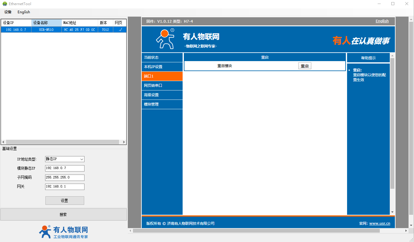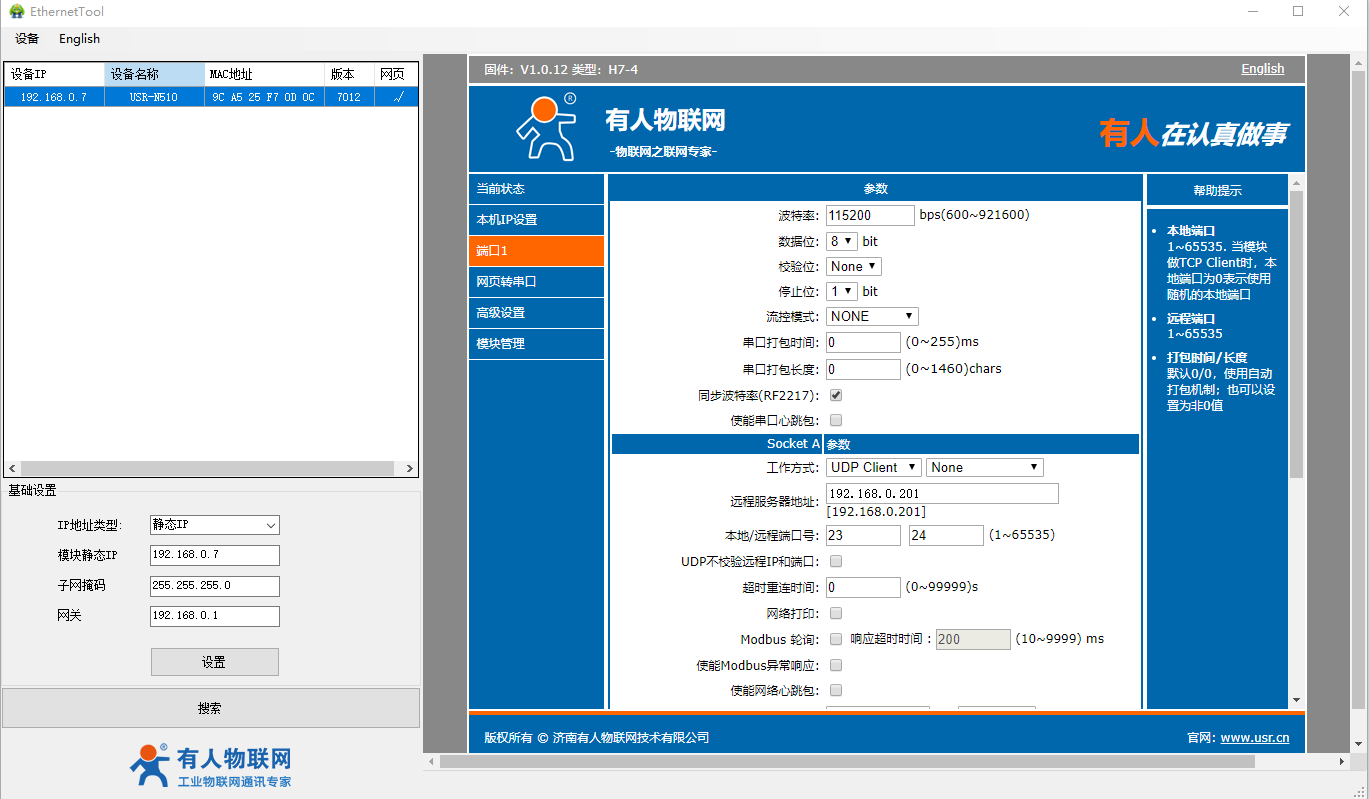 2、USR-N510-H7設(shè)置軟件http://www.0575400.com/Download/383.html