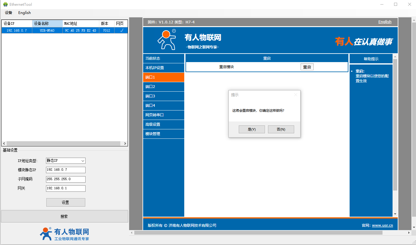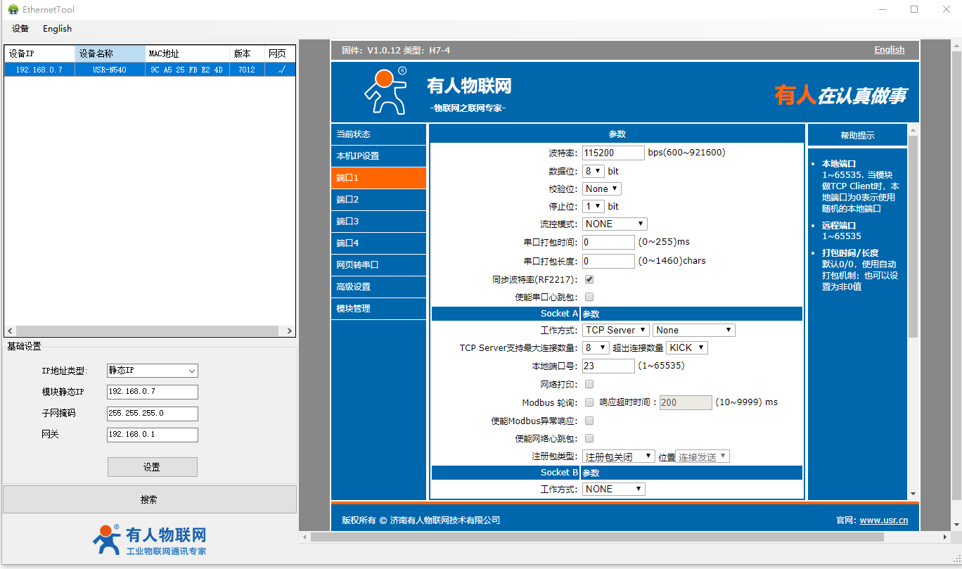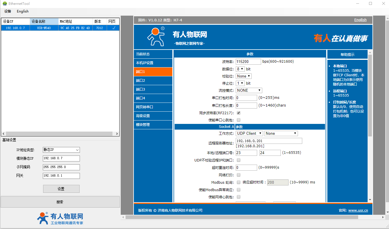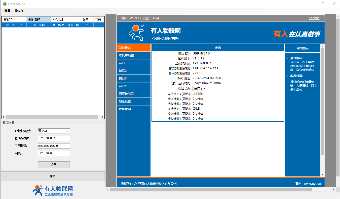 2、USR-N540-H7設置軟件http://www.0575400.com/Download/383.html
