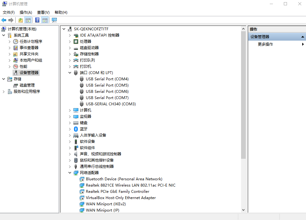 電腦鼠標點擊計算器管理,右擊,點開設備管理器,點擊端口,查看USR-IO34-LR-C 接的USB-RS485串口線COM口號。