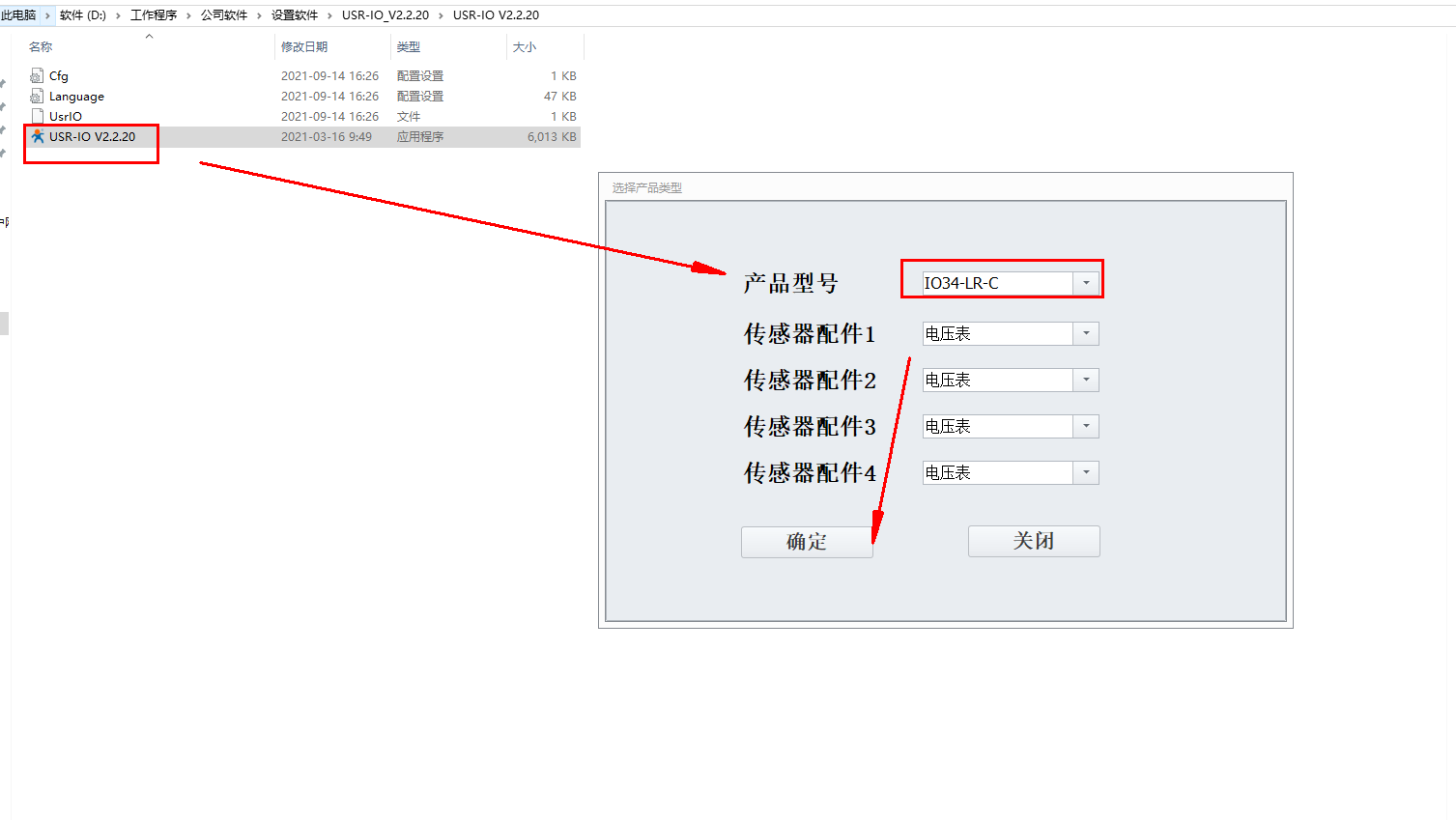 1、打開IO設置軟件,選擇產品型號IO34-LR-C