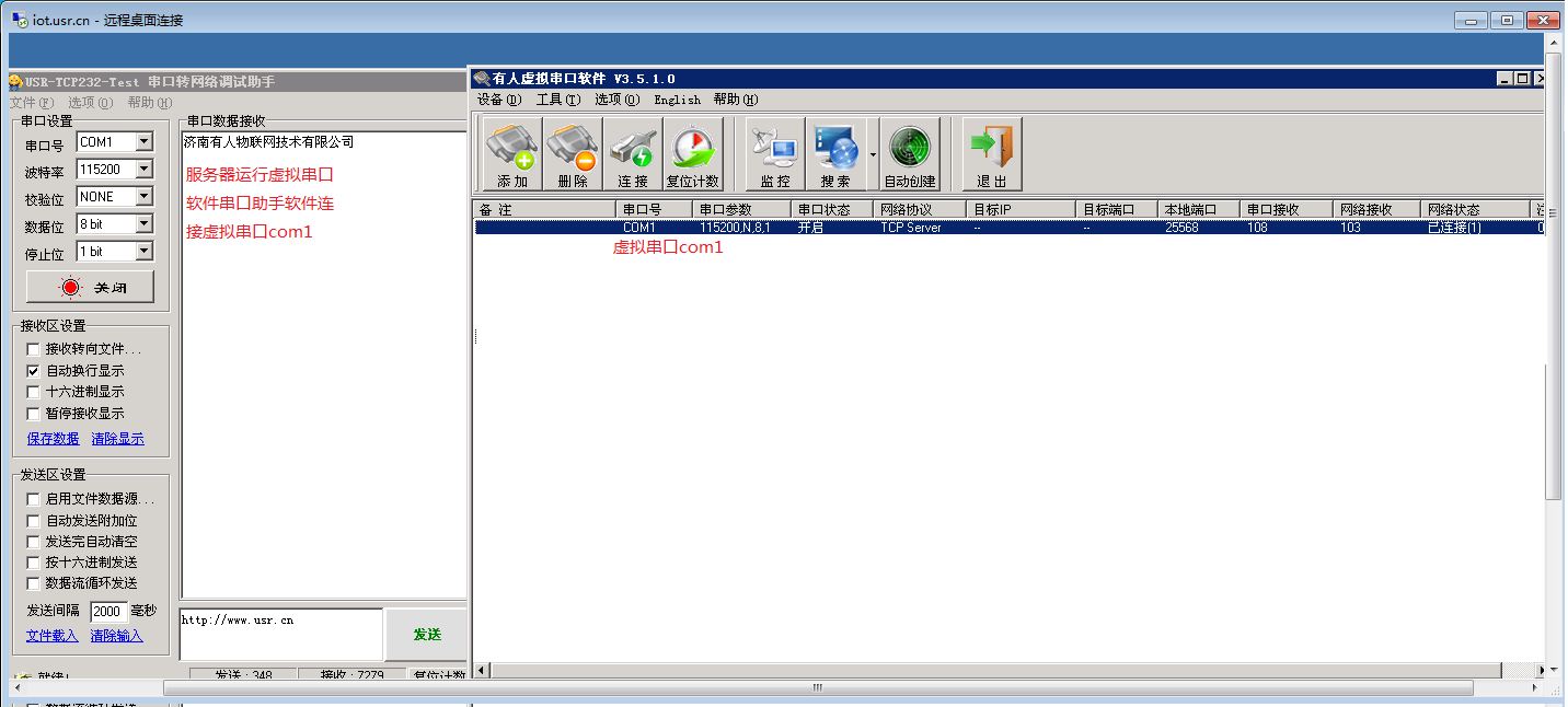 服務器中設置虛擬串口軟件和串口調試助手軟件;