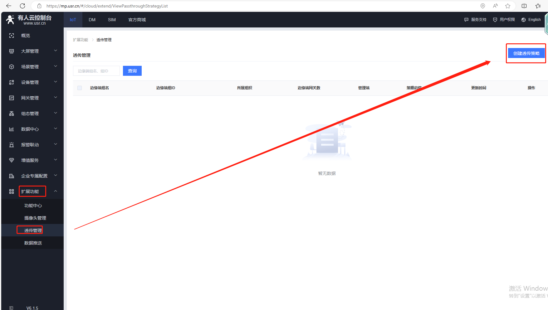 1、擴展功能,透傳管理,創建一個透傳策