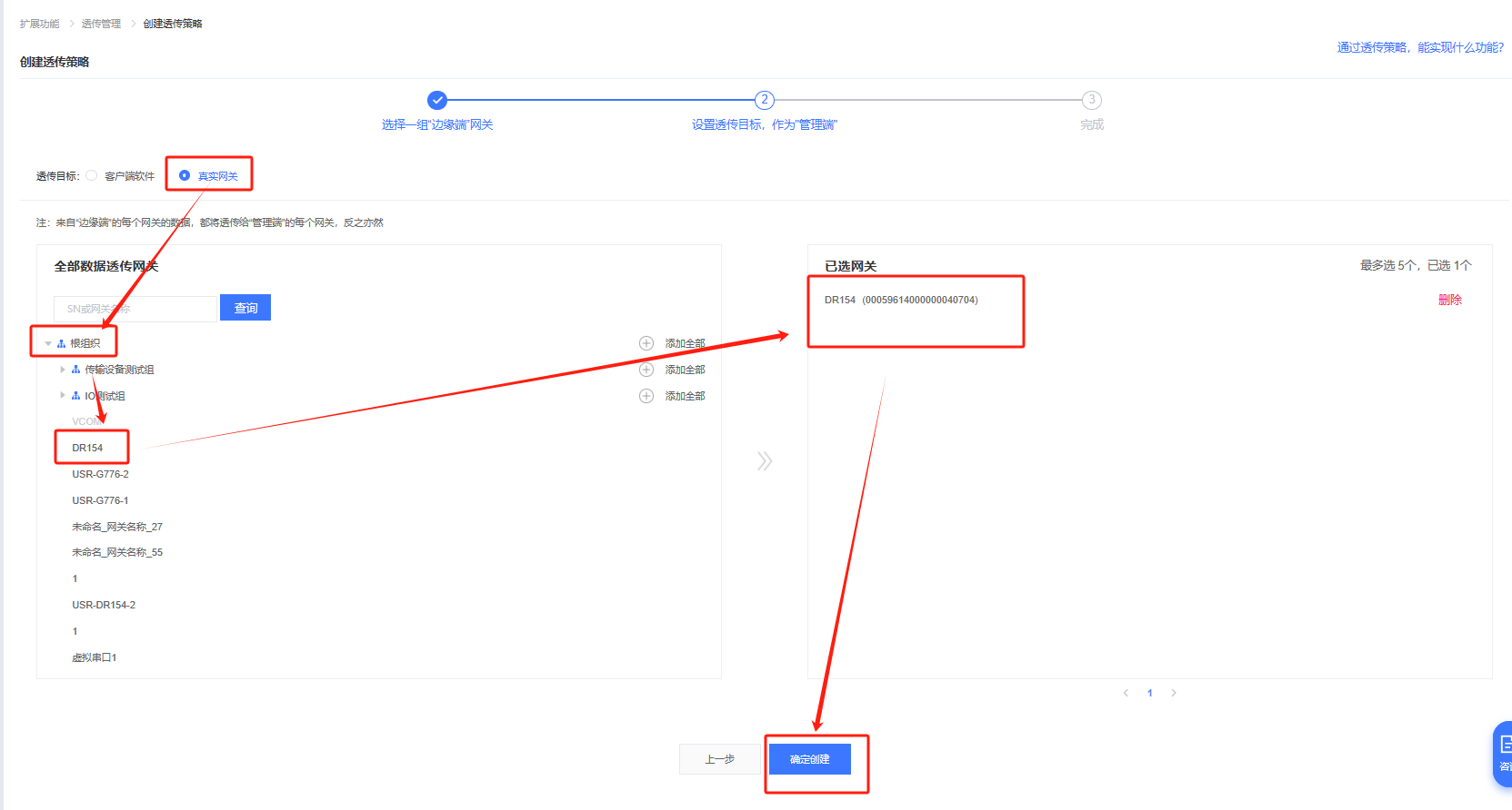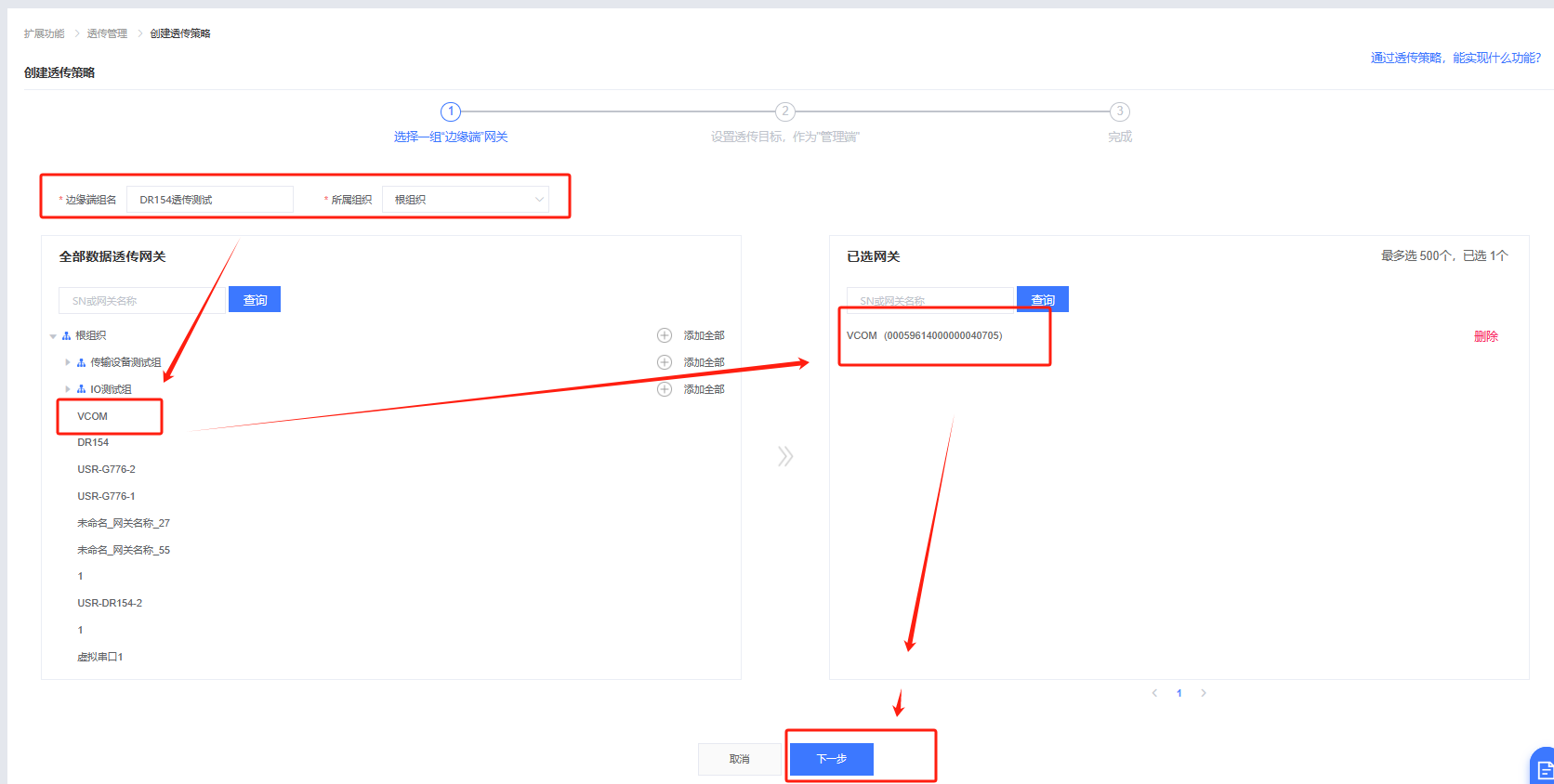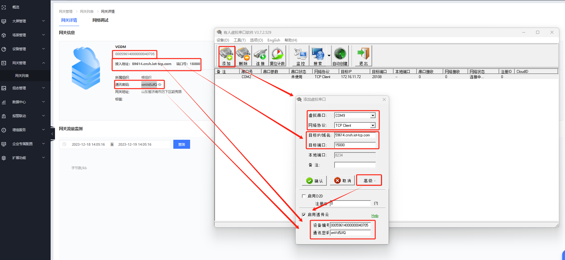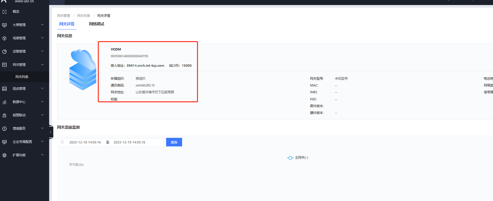 網關管理--網關列表--添加,選擇SN不支持的方式添加一個名為VCOM的網關,同時開啟有人云透傳功能