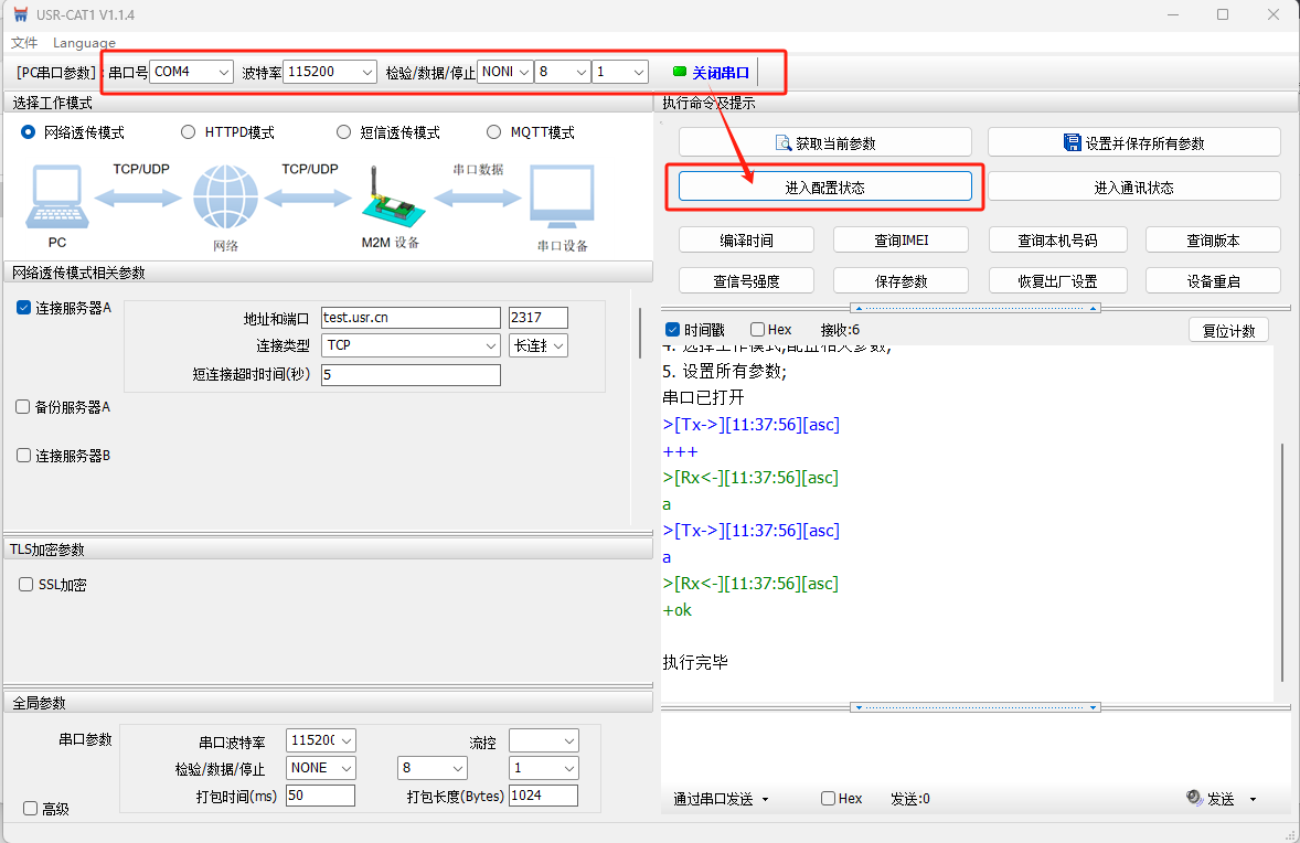 打開154上位機軟件,選擇COM口,115200 N 8 1,打開串口,點擊進入配置狀態