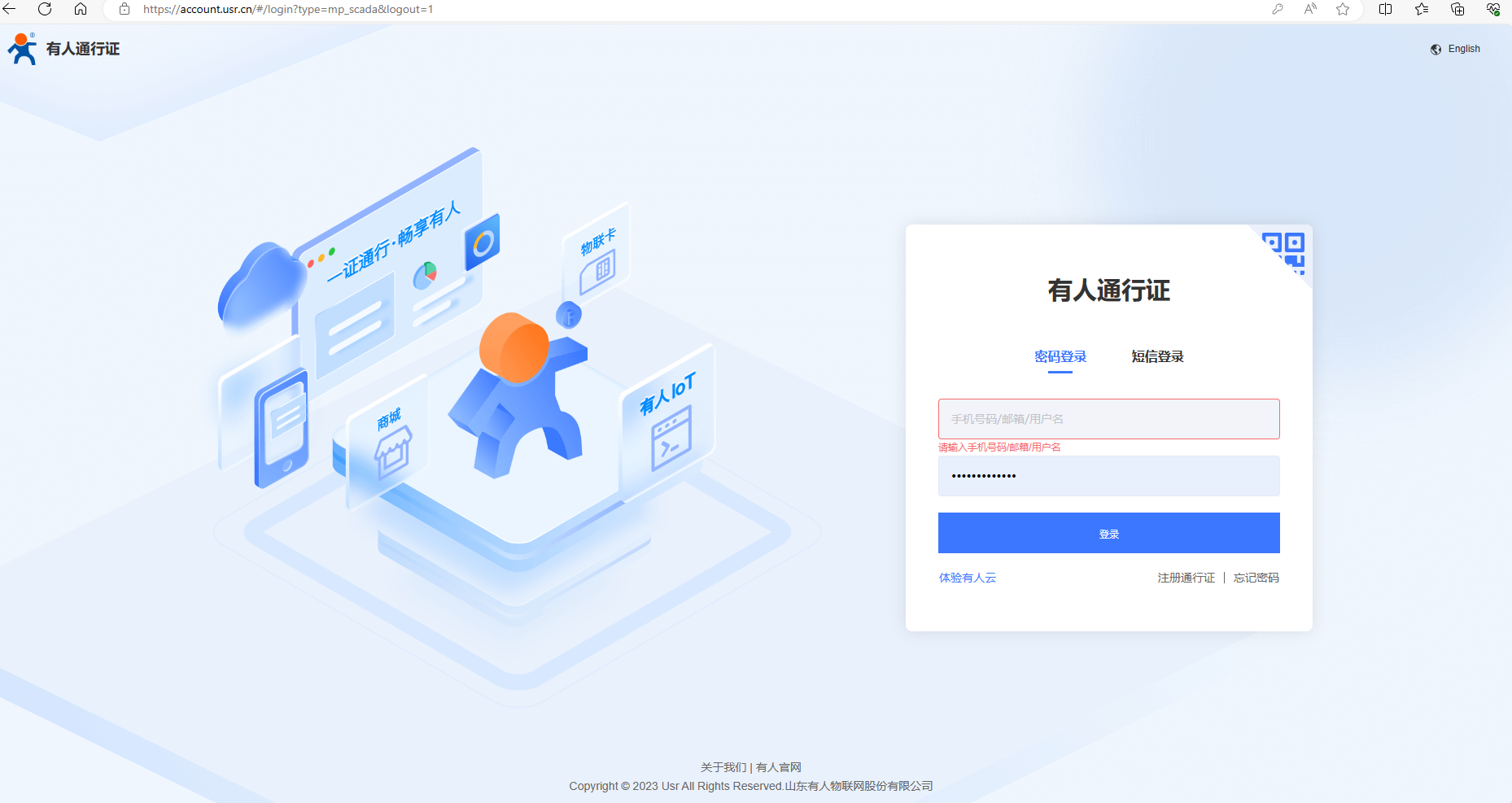 1.登錄有人云:https://account.usr.cn/#/login?type=mp_scada&logout=1