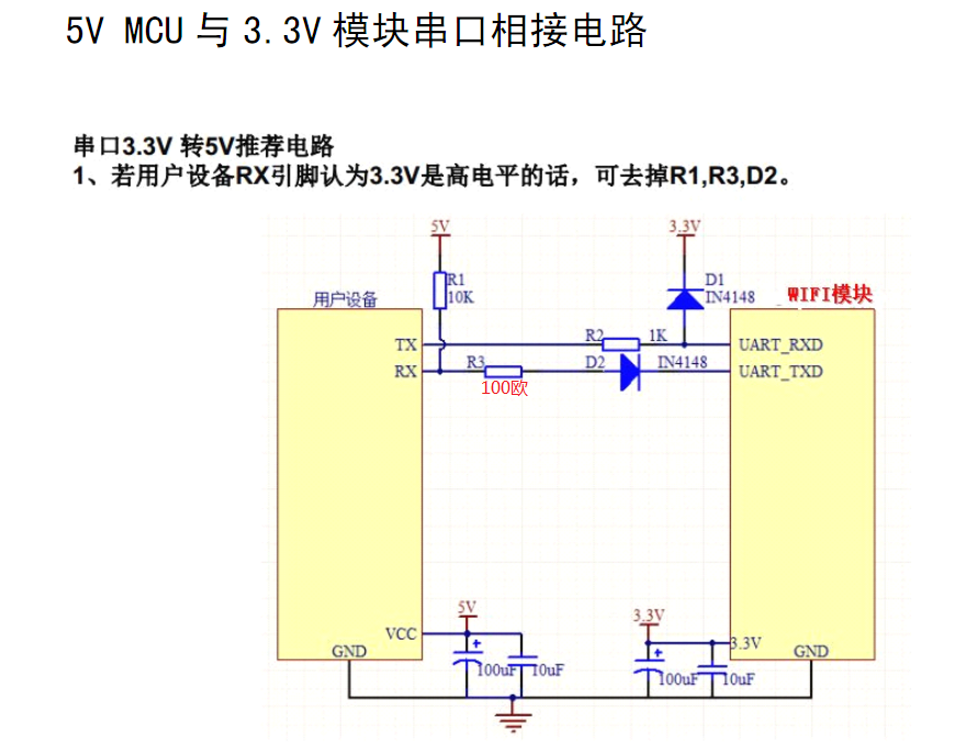 5v單片機UART接口與3.3v 模塊UART接口連接參考電路