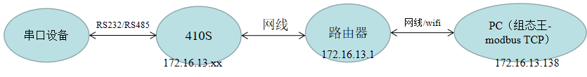 1>硬件連接:410S的串口通過USB轉232/485連接到電腦上,電腦和410S接在同一個路由器上