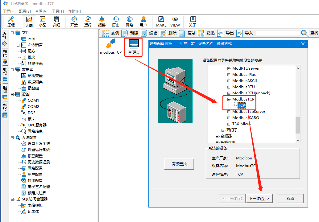 2>設備--新建設備--PLC--莫迪康--modbus TCP