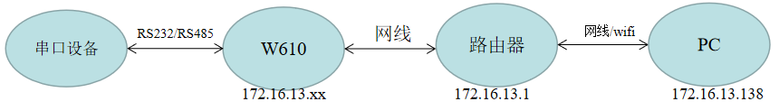 1>硬件連接:W610的串口通過USB轉232/485連接到電腦上,接上wifi天線,供電
