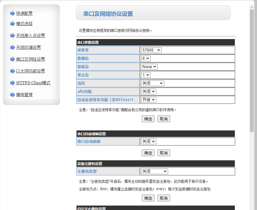 5>串口及網絡設置,可以根據實際情況修改W610的串口等參數在本案例中我們保持W610出廠默認參數
