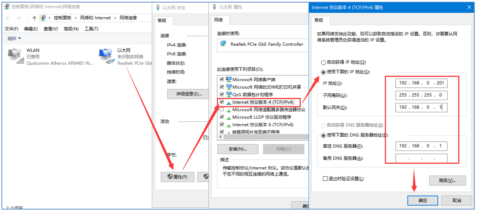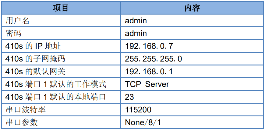 3.給電腦設(shè)置靜態(tài)IP,要與410S的IP在同一個(gè)網(wǎng)段:192.168.0.201(410S默認(rèn)參數(shù)見表)。