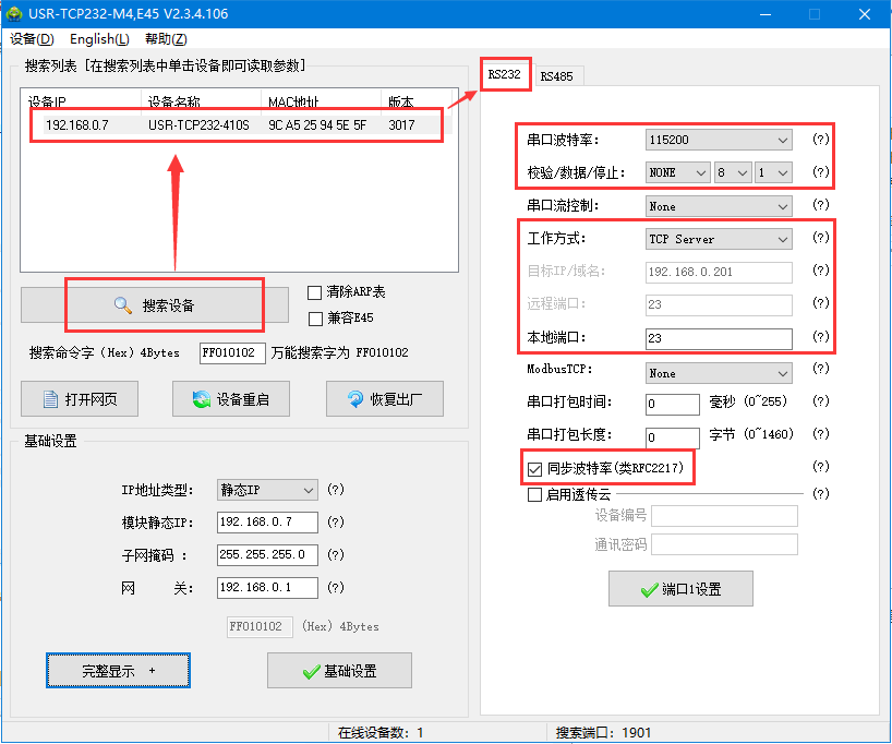 USR-TCP232-410S設(shè)置軟件:http://www.0575400.com/Download/230.html