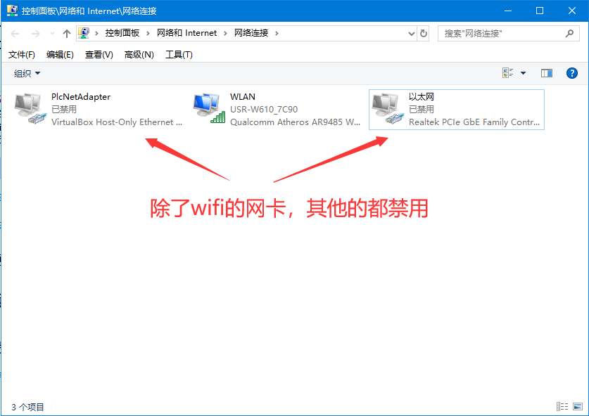 1、電腦打開無線網絡連接,搜索網絡,如下圖的“USR-W610_xxxx”(xxxx 是 MAC 地址后四位)即是模塊的默認網絡名稱(SSID)。電腦關閉防火墻與殺毒軟件并禁用除了wifi之外其他的網卡。