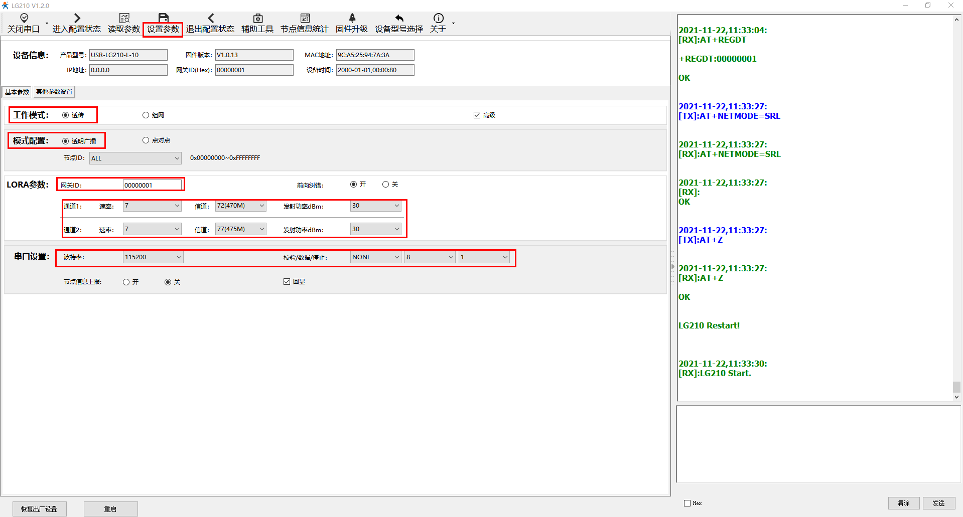WH-L101-L-H20和USR-LG210連接TCP服務器-透傳模式透明廣播示例