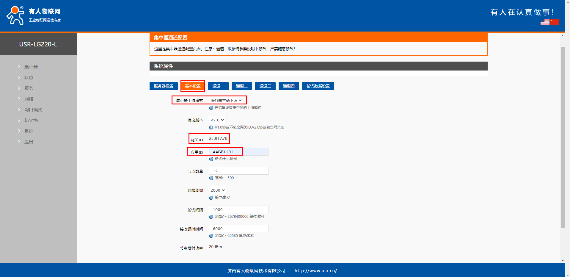 3、配置USR-LG220基本設置