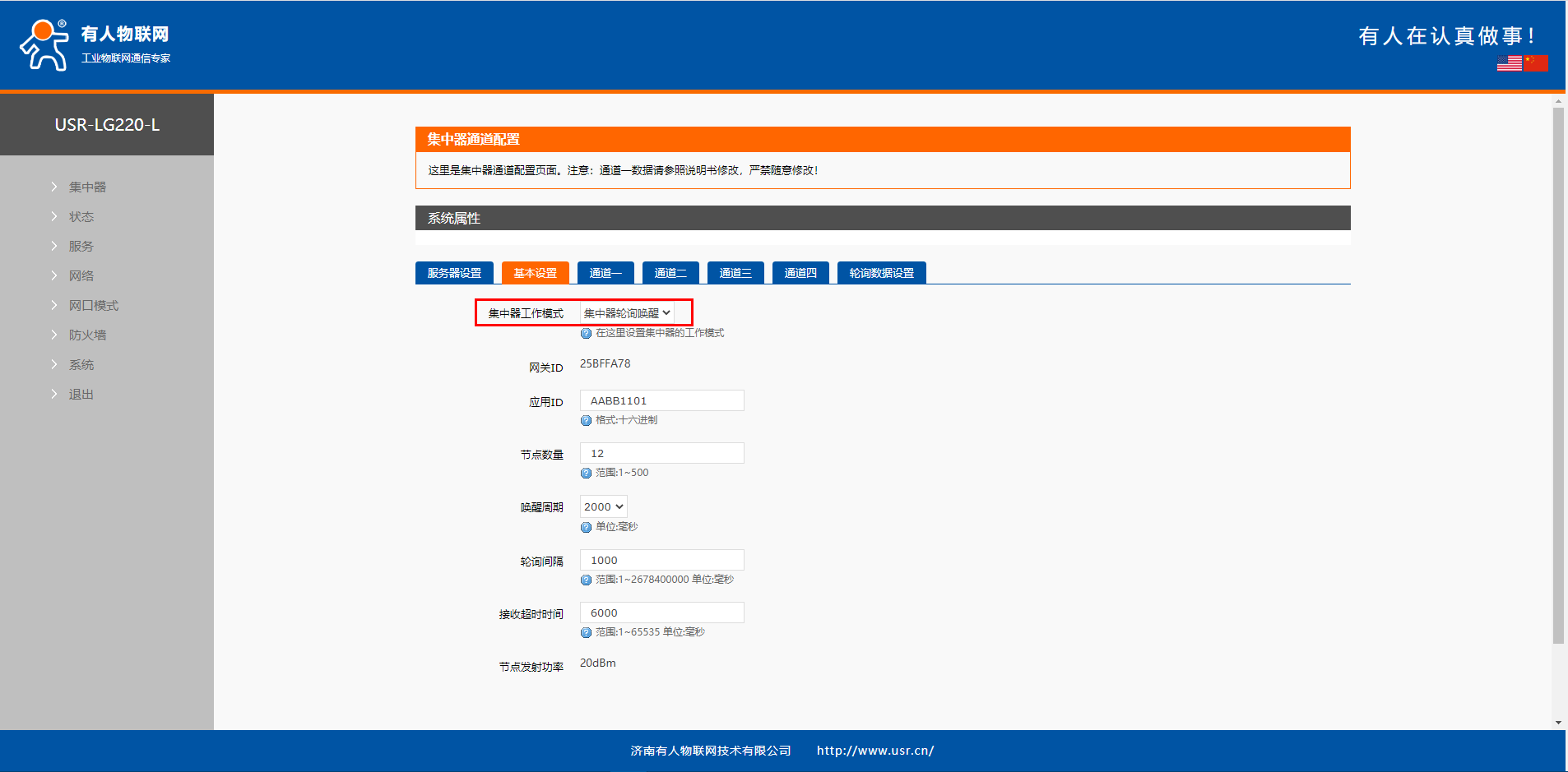 WH-L101-L-H20和USR-LG220集中器輪詢喚醒模式示例
