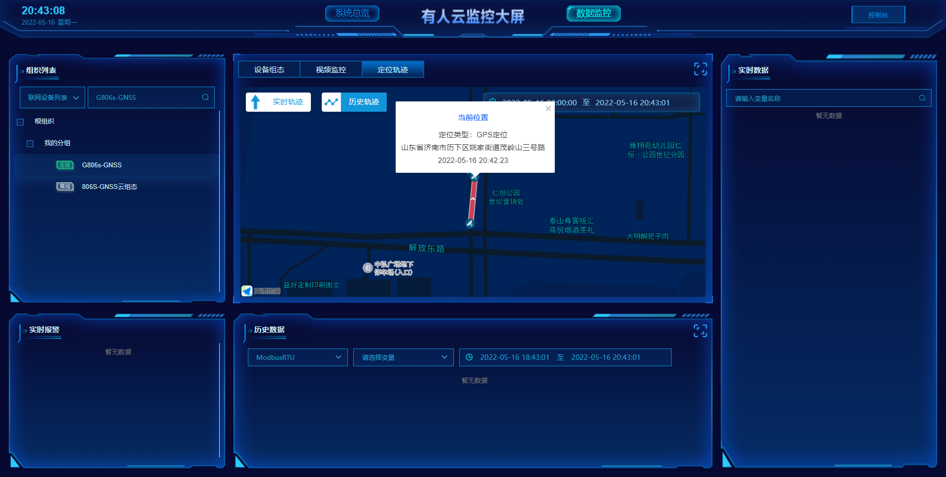當有人云設備列表內,所設置的設備在線后點擊有人云“監控大屏”,可以看到定位類型以及當前位置;