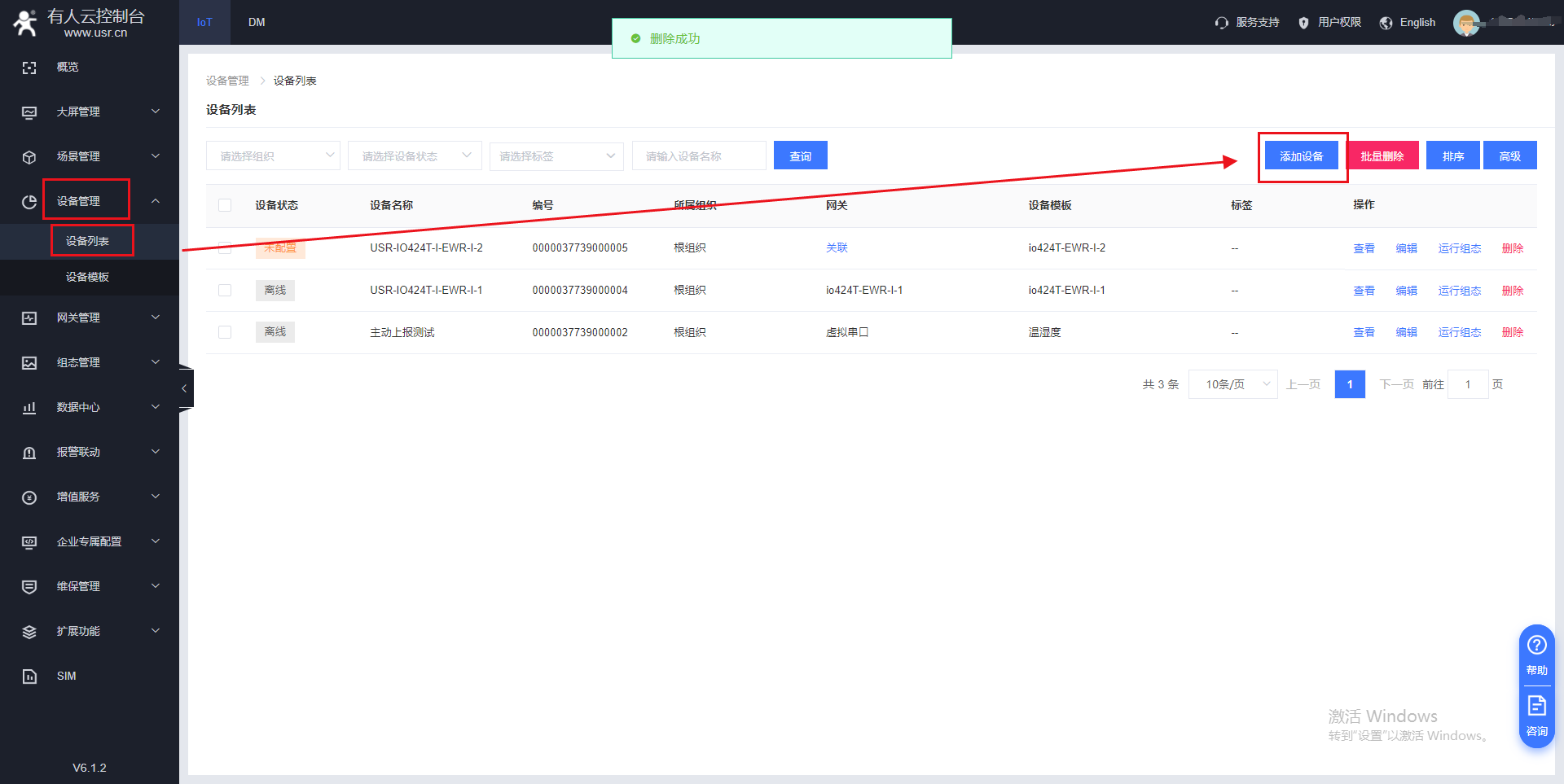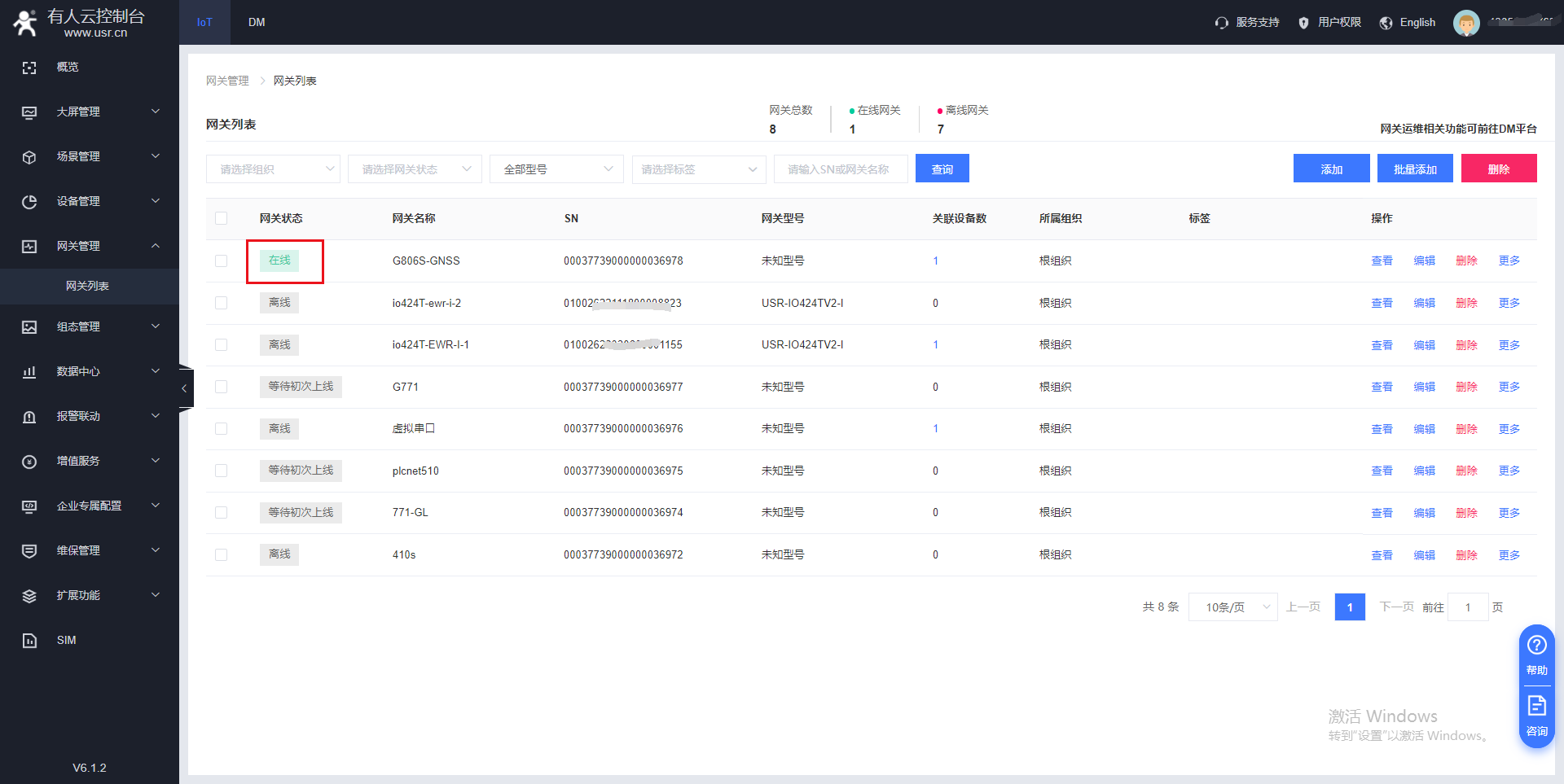可以看到云端設備上線