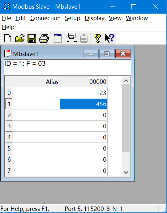 打開modbus slave軟件(模擬串口傳感器設備)配置串口設備的寄存器信息,調用電腦設備管理器中生成的com口,并設置好寄存器參數。最終賦予slave值,會發現云端成功采集到slave從機數據。
