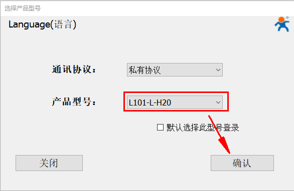 電腦打開WH-L101-L-H20的設置軟件,型號選擇L101-L-H20。