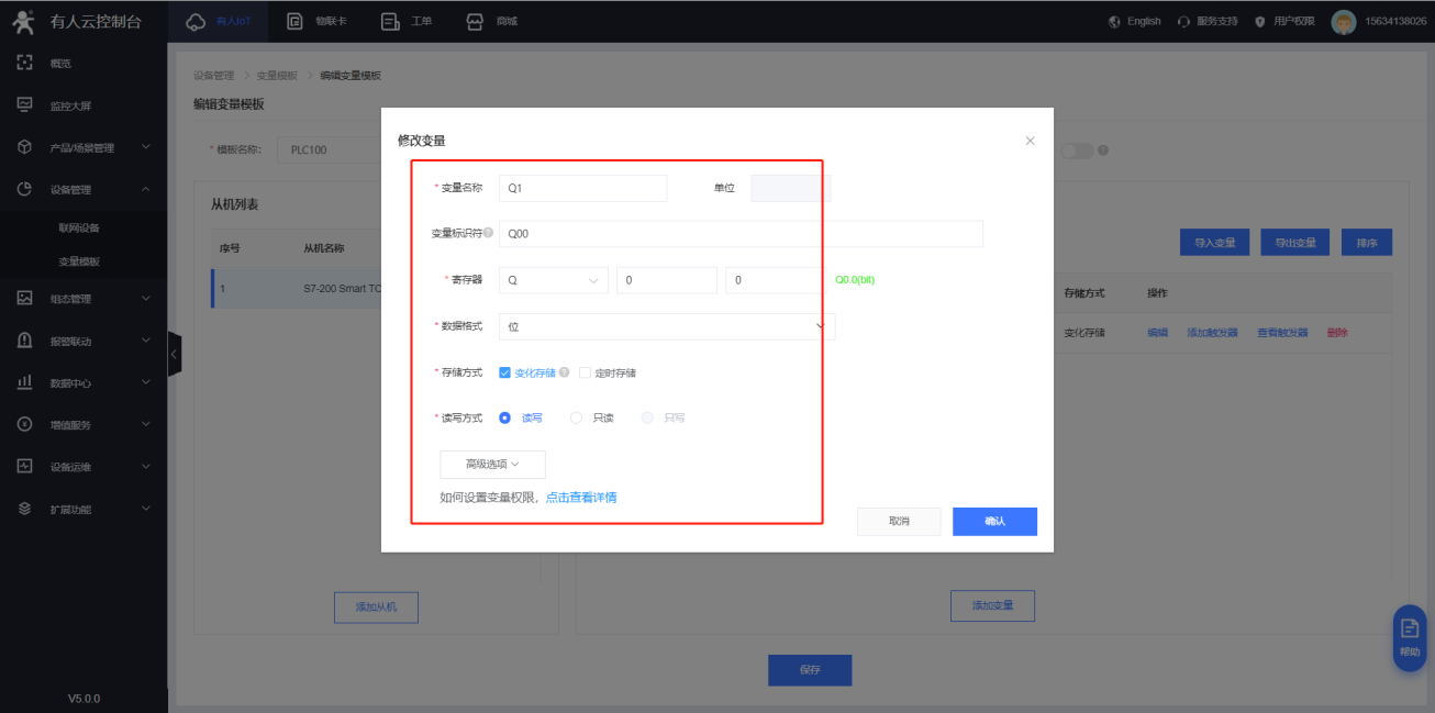 4. 選擇完模板后,點擊保存,重啟設(shè)備,然后配置從機和變量