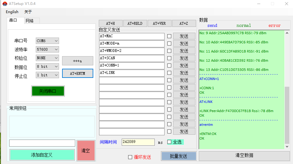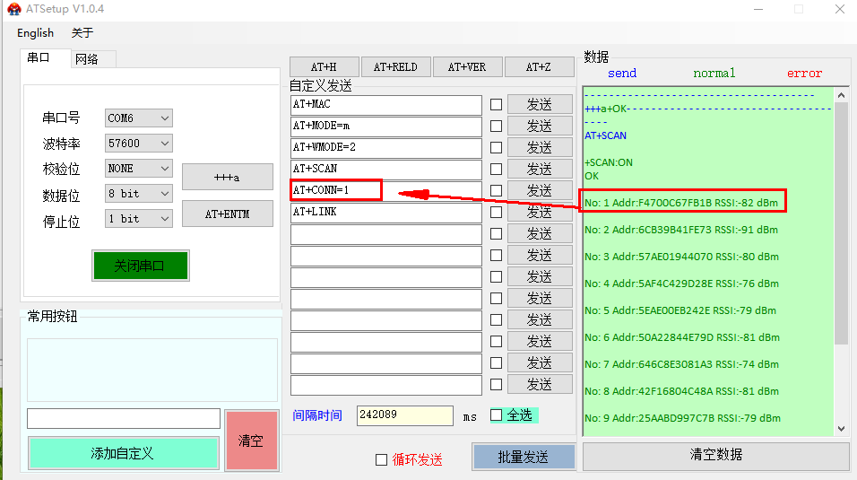 (3)根據掃描結果進行連接,發送AT+CONN=1